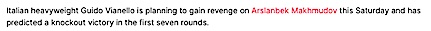 Il peso massimo italiano Guido Vianello sta programmando di aggiudicarsi la rivincita su Arsianbex Makhmudov questo sabato e ha predetto un knock out nelle prime sette riprese.