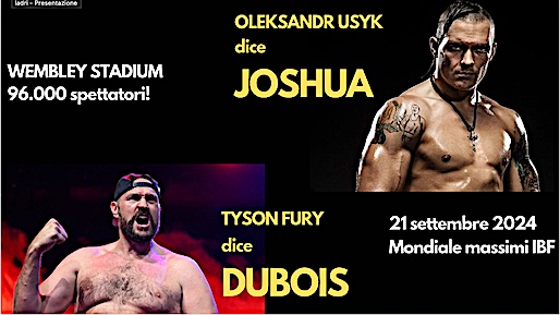 “Anche se Joshua ha perso contro Usyk per due volte, e Dubois ha combattuto contro Usyk e lo ha messo al tappeto, resto dell’idea che alla fine a vincere sarà Joshua.”