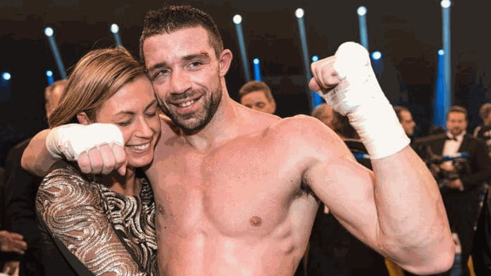 “Mancavo sempre il momento giusto. Avevo perso il titolo italiano, la gente diceva “Quando c’è da ballare, Giovanni non balla”. Anche nella vita privata stavo attraversando un momento difficile. E poi, sentivo sempre lo stesso ritornello. “Fuori se non vinci per ko non vinci, quello è imbattuto (21-0, 21 ko), più giovane di undici anni, dove vai?”. Tutto, pugilato, lavoro, famiglia non girava come avrebbe dovuto girare. Quella sera però era tutto diverso. Ero pronto. Ero sicuro di farcela. L’avevo anche scritto sul diario. “Metterò ko Vincent Feigenbutz”. Finito il combattimendo sono stato sommerso da una valanga di emozioni. Avevamo dostrutto lo stereotipo. Noi tutti, io, la mia compagna Veronica (foto sotto), Italo, Gigi, il gruppo intero, avevamo scalato la montagna.