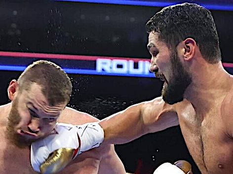 “C’è stato un momento in cui si era un po’ fermato. Dopo la sconfitta, una brutta ferita, con Jonathan Rice c’è stata la svolta. Abbiamo cambiato criteri di allenamento, abbiamo aumentato l’intensità del lavoro, lavorando molto sul piano tecnico/tattico. Contro Efe Ajagba è andato bene, qualche sbavatura c’è stata, ma mio avviso aveva vinto. Di poco, ma aveva vinto. Contro Makhmudov (foto in alto) è stato perfetto. Ero certo che ce l’avrebbe fatta, ma non pensavo che lo avrebbe dominato in quel modo.”