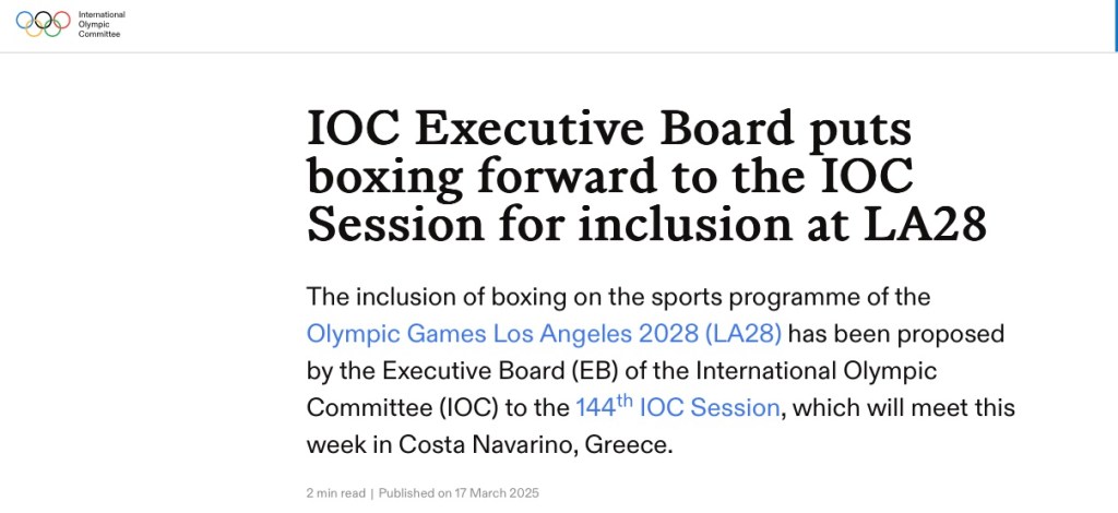 Il Comitato Esecutivo del CIO ha proposto l’inserimento del pugilato nel programma olimpico dei Giochi di Los Angeles 2028.