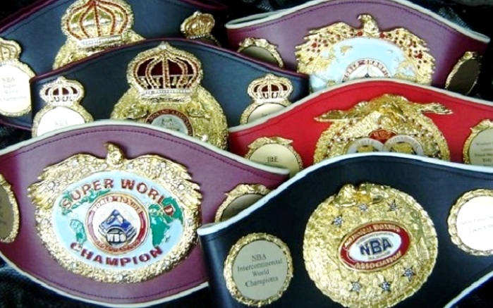 Il titolare unico della cintura è una rarità, ce ne sono almeno quattro per ogni categoria. Sessantotto o settanta pugili che si proclamano (senza averne il diritto) campioni del mondo.