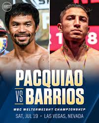 Il 19 luglio Manny Pacquiao torna sul ring per sfidare Mario Barrios, che difende il titolo WBC dei pesi welter.