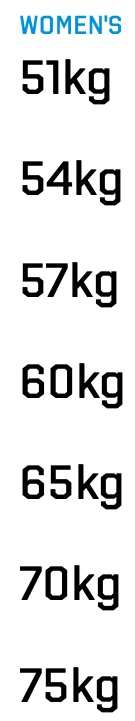 Dieci le categorie di peso sul ring. Sia per gli uomini, che per le donne.