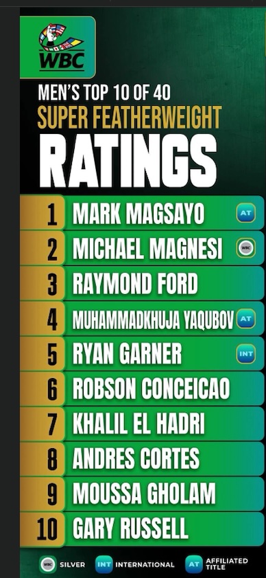 Sul ring anche O’Shaque Foster che metterà in palio la cintura WBC dei superpiuma contro Steephen Fulton (nella foto sotto, l’attuale situazione della categoria per il WBC).