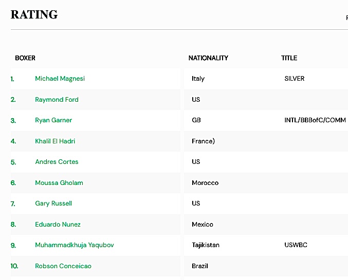 Resterebbe il mondiale Silver di Michael Magnesi (26-2-0, 13 ko), ma la BBC fa capire che quello in cui sarà impegnato il britannico è qualcosa di più. Deduzione ovvia. Mondiale ad interim.